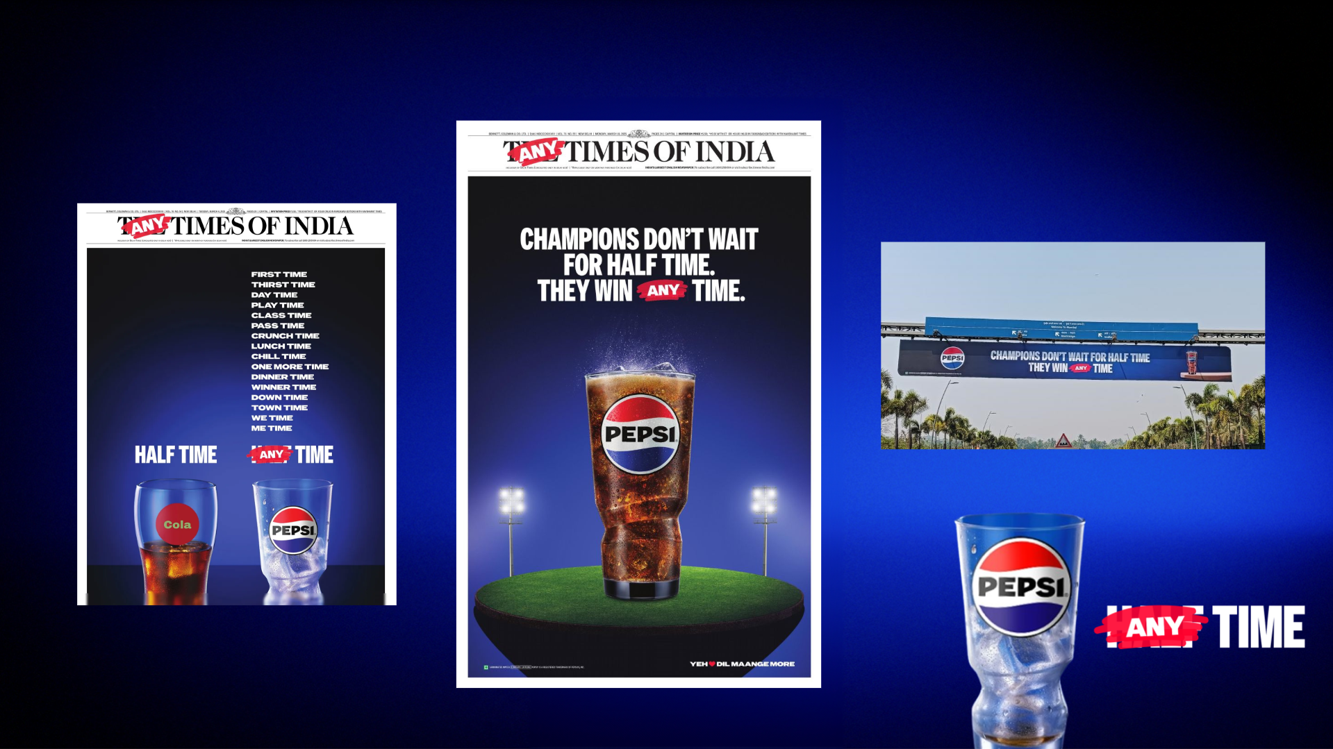 Coke was the official sponsor, playing the game of Half Time at the Champions Trophy ’25. Pepsi couldn’t play the game inside the stadium, so it changed it. Because why wait for half time, when real fans can have Pepsi Any Time.